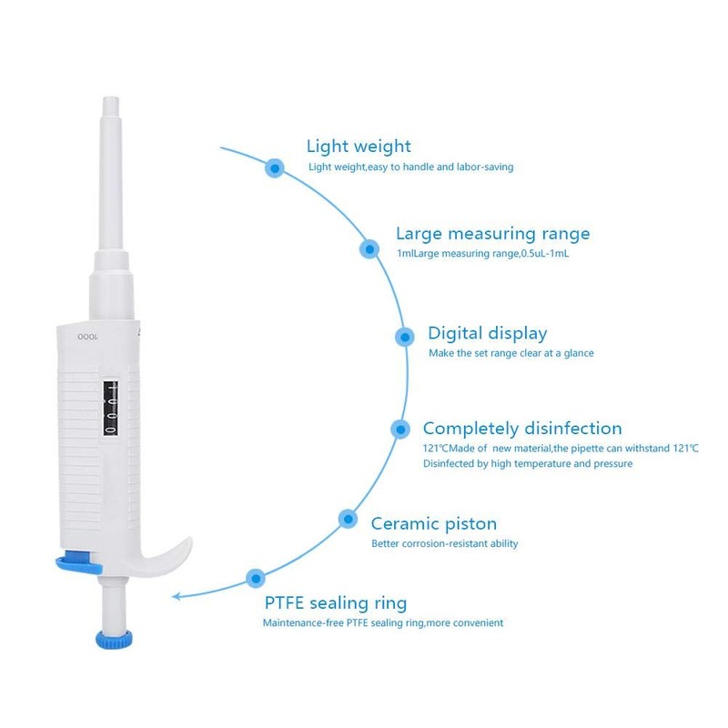 - CONVENIENTE Y PRÁCTICA: esta micropipeta es hermosa y la practicidad se ha mejorado considerablemente.Mango ergonómico para un agarre cómodo.