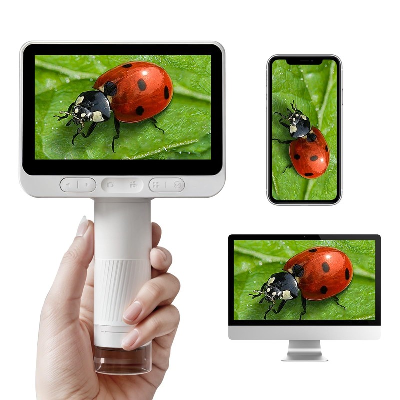 - 4.3-inch Large Screen / Eye Friendly: No need to peek into traditional optical microscopes, it produces real-time footage on large 4.3-inch screen. You can observe in a comfortable position while reducing eye strain. Equipped with a 2 megapixel CMOS chip for crisp detail Make observation more fun and more convenient
