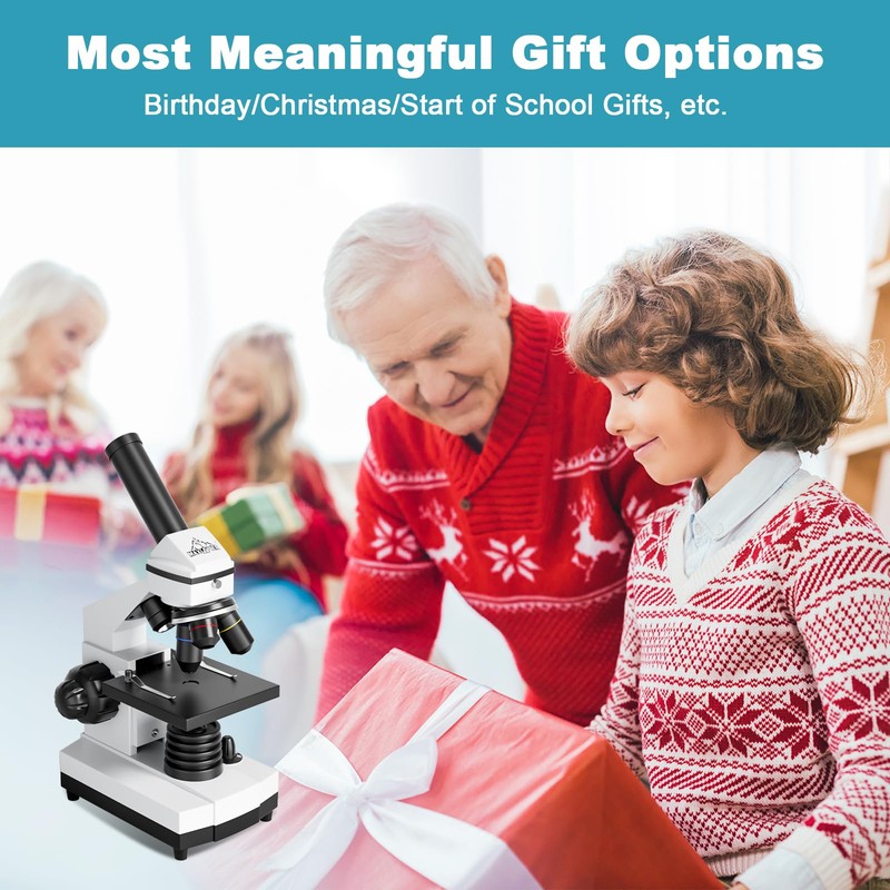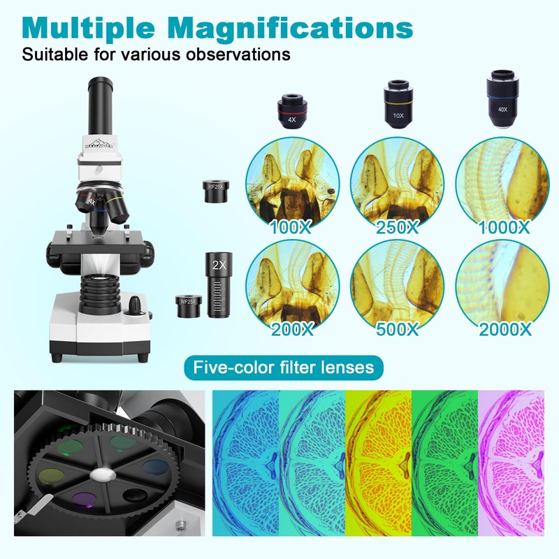 Microscope for Adults Kids Students 100-2000x Magnification Powerful Biological Educational Microscopes with Operation Accessories (10p), Slides Set (15p), Phone Adapter, Wire Shutter & Backpack