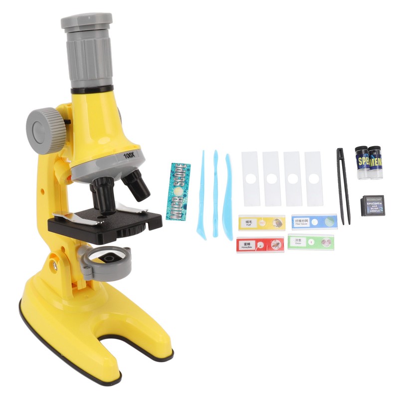 Microscope for Kids 100X 600X 1200X Zoom LED Light Science Microscope Kit for Children Student Yellow