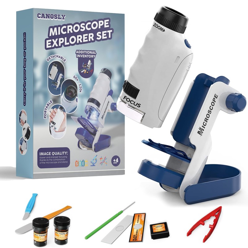 Introduce your little scientist to the wonders of the microscopic world with our kids microscope! Designed for children ages 4-12, this handheld mini microscope is the perfect educational tool for young explorers. With 60X-120X magnification, kids can observe tiny details like never before. Whether they are examining leaves, insects, or everyday objects, this portable microscope for kids turns learning into an exciting adventure! Powerful Magnification & High-Quality Optics This handheld microscope for kids 5-7 provides crystal-clear imaging, making it ideal for early STEM education. Unlike ordinary magnifying glass for kids, our kids' microscope offers an advanced mini scope experience. The real microscope for kids allows children to explore the fine details of nature, sparking their curiosity and love for science. Digital Features & Camera Compatibility Capture the magic of discovery with a magnifying glass with camera for kids! This kids digital magnifying glass lets young scientists document their findings and share their observations. A kids camera microscope helps children take a closer look at their surroundings, fostering creativity and critical thinking. Whether using a handheld digital microscope for kids or a mini pocket microscope, this is the ultimate STEM adventure tool. Portable & Durable Design Our mini microscope for kids 8-12 is lightweight, compact, and built for little hands. The handheld miniscope fits easily in pockets, making it ideal for outdoor adventures. Whether on a nature hike, at school, or at home, this portable microscope kids will always be ready for discovery. Perfect for toddlers, preschoolers, and young learners, the little microscope for kids is durable and designed to withstand daily use. Complete Science Exploration Kit This STEM adventure mini microscope kit includes 3 blank slides, 4 play sticks, 2 collection boxes, 1 filing box, 1 small screwdriver, and a convenient storage case. Unlike other toy microscopes for kids ages 4-8, our your little scientist microscope offers a complete set to enhance the learning experience. Encourage hands-on exploration with a children's microscope that comes with all the necessary tools for real-world discoveries. Educational & Fun Learning Tool Make learning fun with an engaging educational insights microscope! This child microscope fosters a love for science through hands-on exploration. Whether your child is a budding biologist, curious chemist, or aspiring astronomer, this microscope for kids 8-12 boys will ignite their passion for discovery. It’s more than just a toy microscope for kids—it’s a gateway to the microscopic universe! Perfect Gift for Young Explorers Looking for the perfect gift for a young scientist? This kids microscope for 5 year old and up is an excellent choice for birthdays, holidays, and educational gifts. Whether for a toddler microscope 3 year old, a child microscope age 8, or a kids microscope for 10 year old, this mini labsters microscope makes a fantastic present. Inspire curiosity and hands-on learning with a children's handheld microscope that turns everyday objects into fascinating discoveries! Encourage your little scientist to explore, discover, and learn with the best kids pocket microscope on the market. Get the miniscope for kids today and watch your child’s curiosity grow!