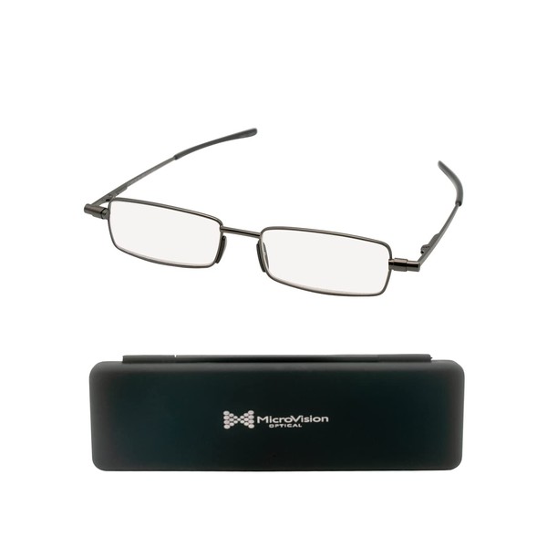 MicroVision Optical Flat Folding Reading Glasses With Compact Case For Women and Men, Slim, Foldable Frame Eyeglasses