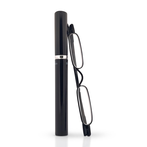 MicroVision Optical Original Mini Reader Reading Glasses With Tube Case, Durable Stainless Steel Frame For Women and Men Lightweight & Pocket-Sized Eyeglasses as Seen on Oprah Black, +1.00