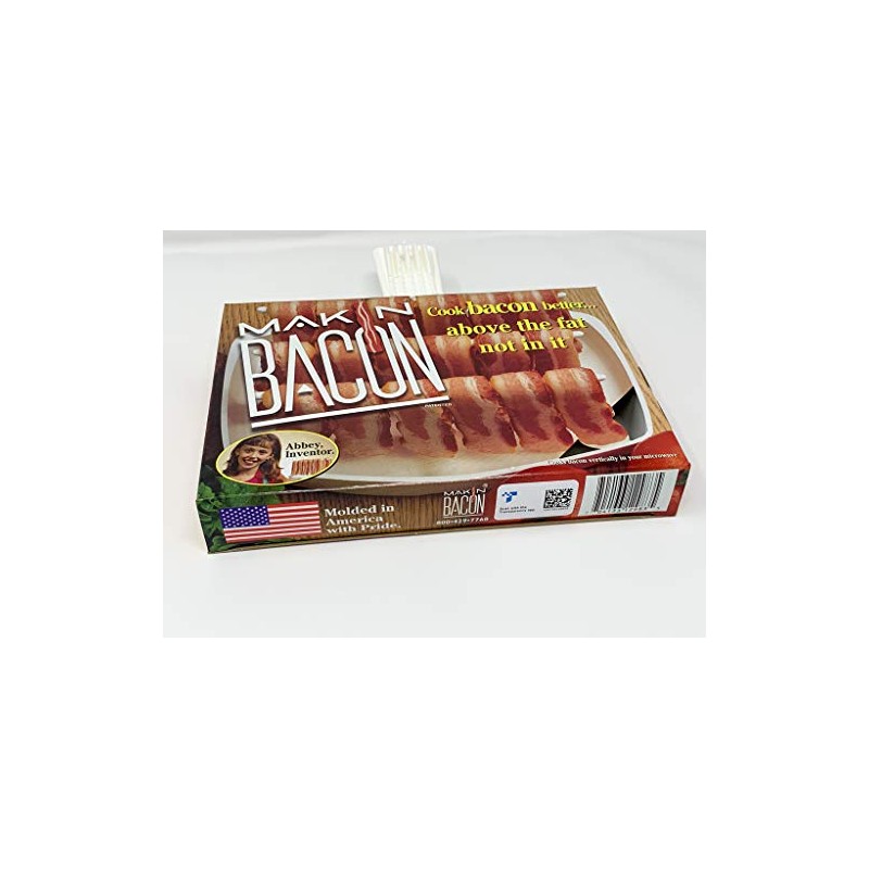 The Original Makin Bacon Microwave Bacon Dish - Makes Crispy Bacon in Minutes - Simple, Quick, and Easy to Use - Reduces Fat Content for a Healthier Meal - Molded in The USA