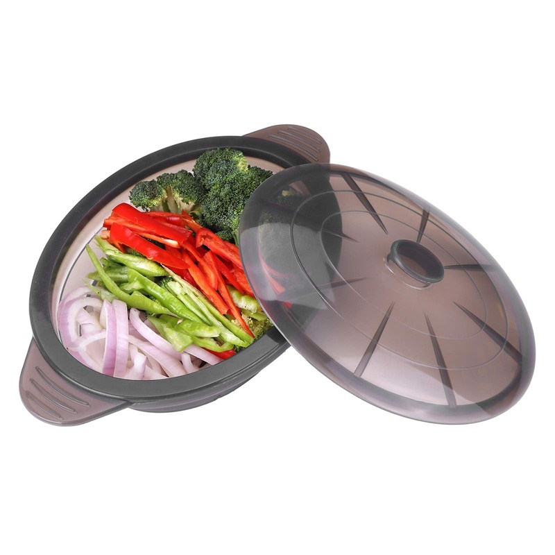 - 🍅USER-FRIENDLY - Perfect time saving and space saving tool for traveling or camping or your everyday use. Silicone steamer cookware has a lid and a detachable insert. Just put a little bit of water in the bottom, cover your food with the lid, and let microwave steamer do the rest. Also, the silicone material is easy to clean and dishwasher safe.