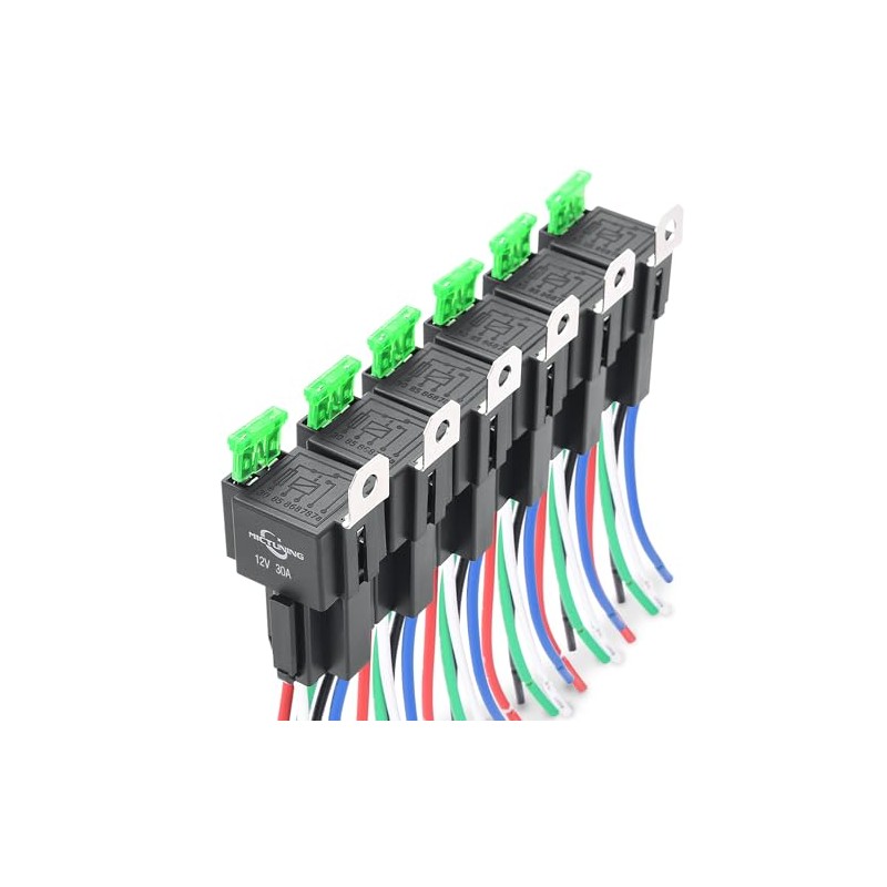 - Updated version: automotive relay in fuse socket with included 30A blade fuses, no need for a separate fuse holder, saves space and money.