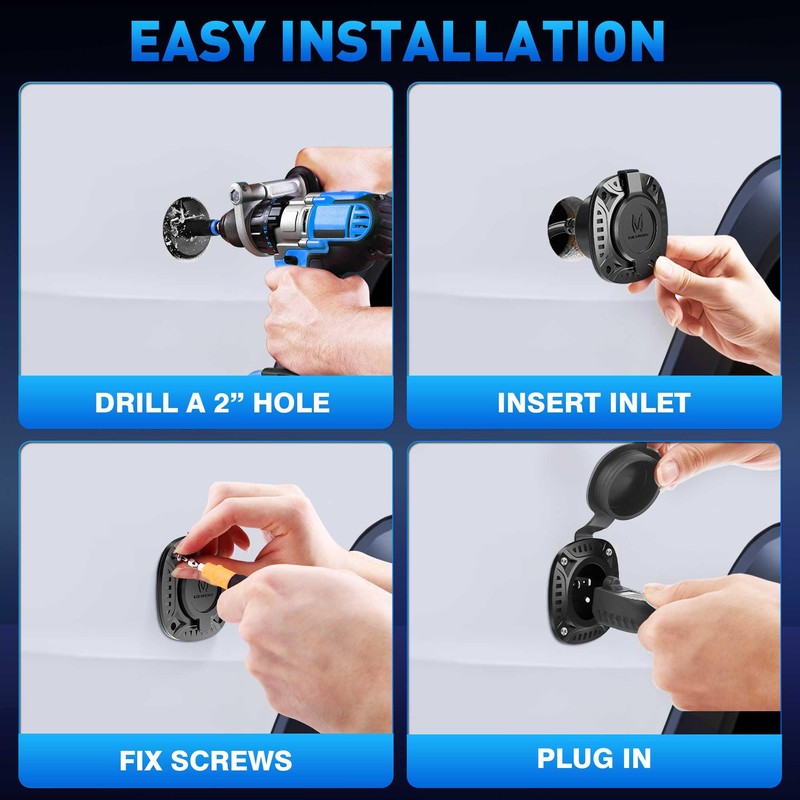 • Quick & Easy Installation – No wiring or cable modifications needed. Just drill a 2-inch hole and secure with four screws for a clean, OEM-style finish. Package comes with anti-rust screws and cable clips