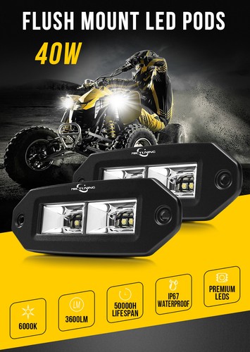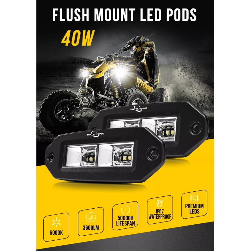 MICTUNING 2x40W LED Work Light Bar Flood Pods Flush Mount for UTV ATV RZR Pickup