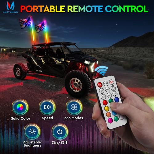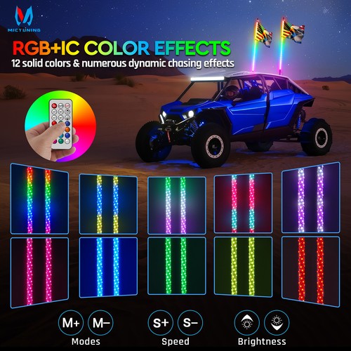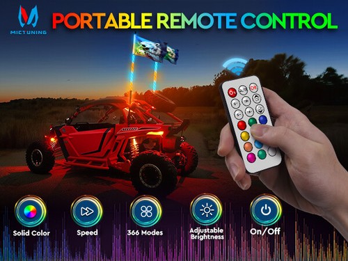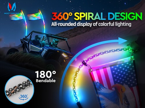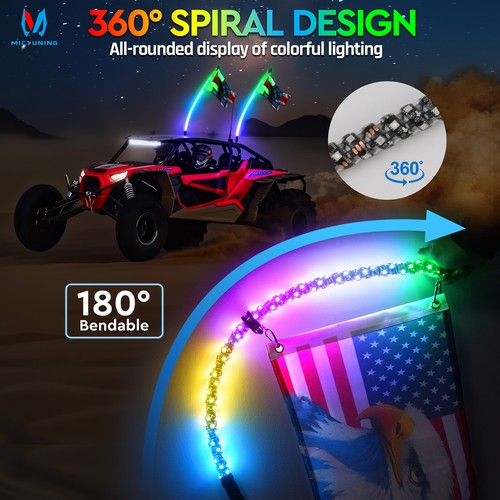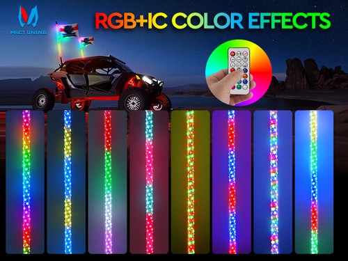 MICTUNING 3FT LED Whips Lights Spiral Antenna Whips RGB+IC Chasing for Can-Am ATV UTV RZR