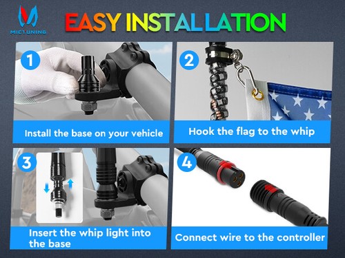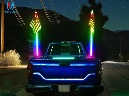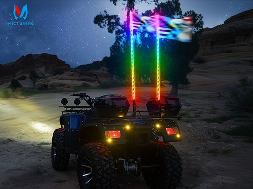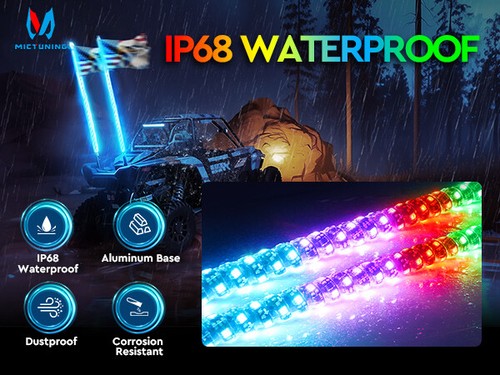 - ✅IP68 Waterproof - Built to withstand rain, dirt, and extreme conditions with an IP68 waterproof rating and corrosion-resistant aluminum alloy base. Flexible 180° bendable antenna whips won't damage LEDs