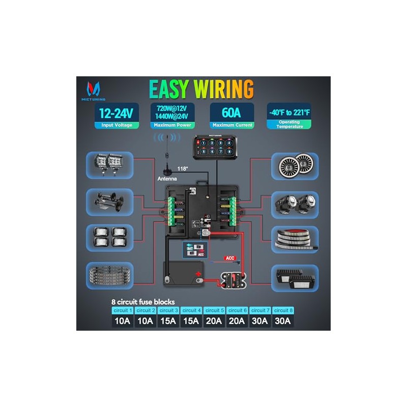 - Long-Range Wireless Remote C Control panels wirelessly up to 230ft. The magnetic remote conveniently attaches to any metal surface of your vehicle and can pair with multiple switch panels for synchronized operation
