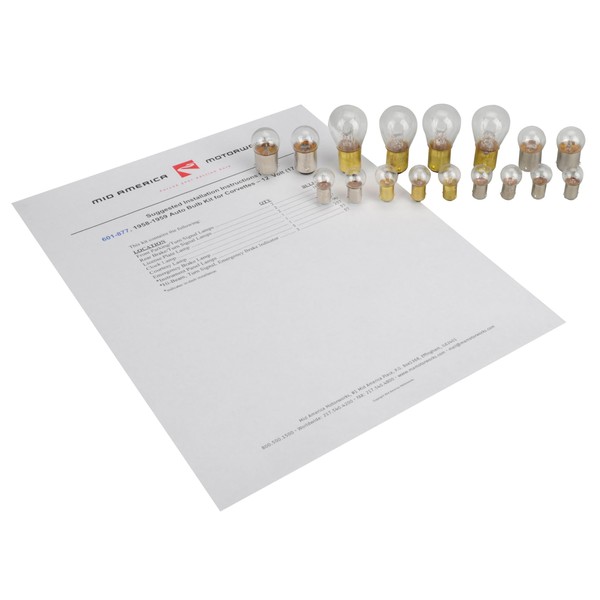 Mid America Motorworks 1958-1959 Corvette Light Bulb Kit 12 Volt 17 Pieces