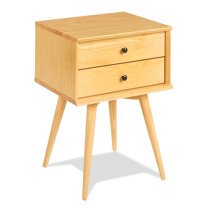 Mid-Century Night Stand / 2 Drawer / Solid Wood / 24"H / Easy Assembly, Scandinavian Oak Finish