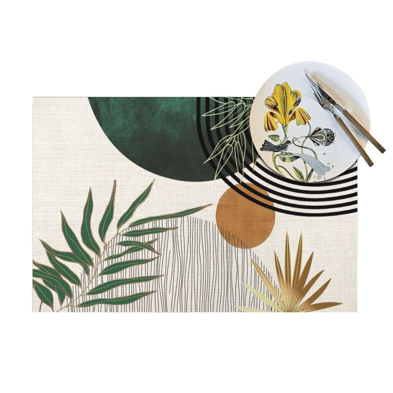 Mid Century Placemats 12x18 Inches Set of 4, Boho Green Gold Tropical Leaf Decorative Rectangle Table Mats for Party Home Kitchen Dining Table Decoration