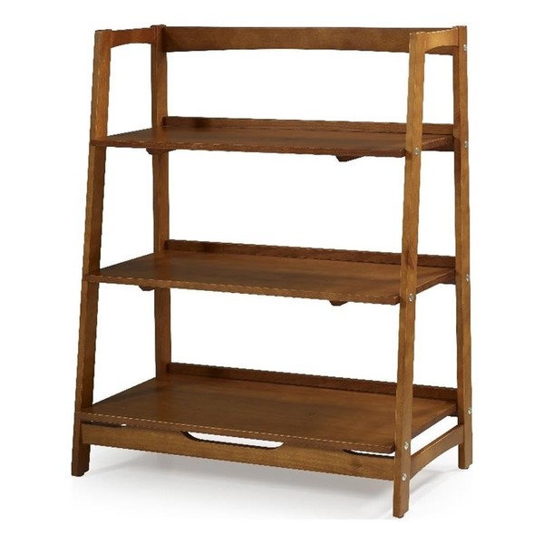 Mid Century Solid Wood Open Shelving Unit - Castanho Finish