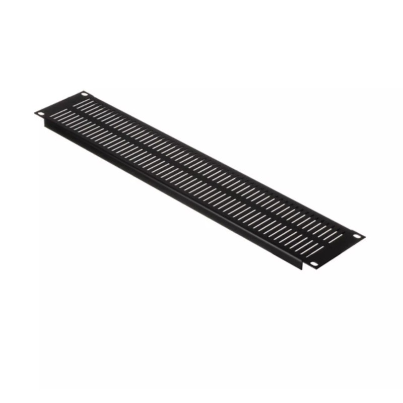 The EVT2 2U Vent Panel from Middle Atlantic is a practical vented panel that is designed for use in a standard 19" equipment rack. Use this panel to cover unsightly open space in your rack and protect your equipment from dust and other foreign debris without restricting airflow. The vented face ensures that your equipment stays cool. This model is constructed of steel and features a black powder-coat finish. It occupies 2U of rack space.