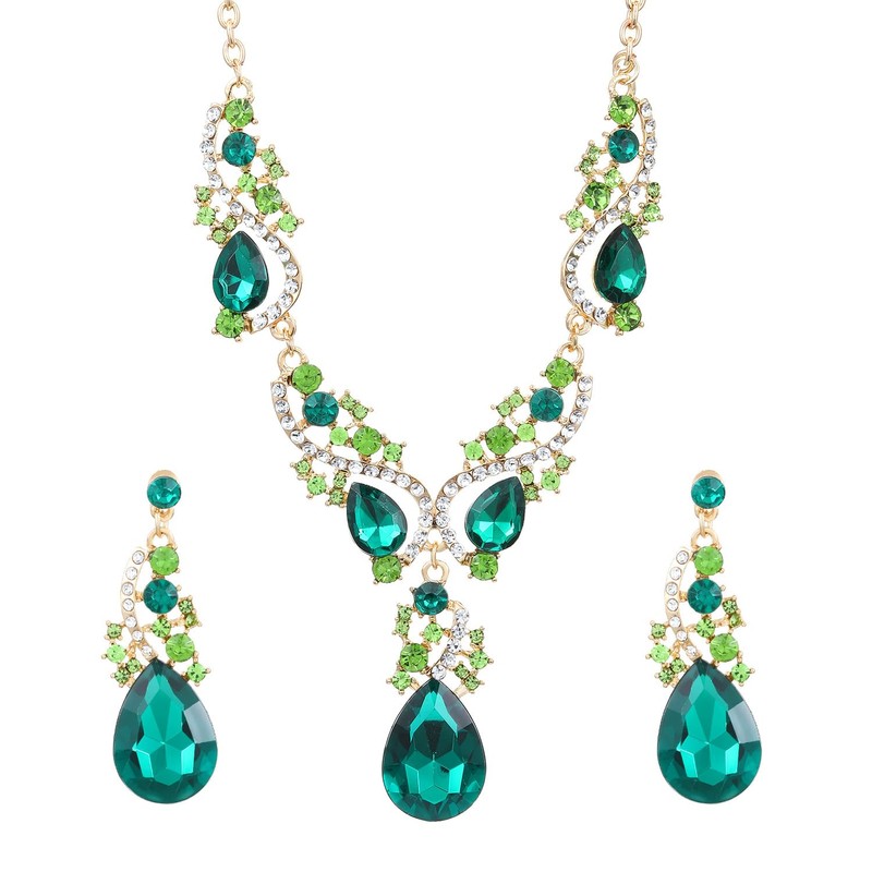 - 【高品質素材】このレディースジュエリーセットは高品質の亜鉛合金製で、メインストーンとサイドストーンはエメラルドグリーンのラインストーンです。 高光沢。 ニッケルフリー、低刺激性でいつまでも輝きます。 色、健康、環境保護に変化しません。 繊細でエレガントなデザインで、着脱が簡単です。 ネックレスの接合部は頑丈に仕上げられており、簡単に壊れることはありません。