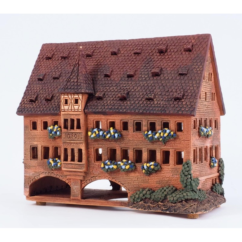 Midene Houses and Villages Collection - Collectible Handmade Ceramic Christmas Village Light House Miniature Heilige-Geist-Spital House in Nurnberg, Germany, Tealight Candle Holder B260AR
