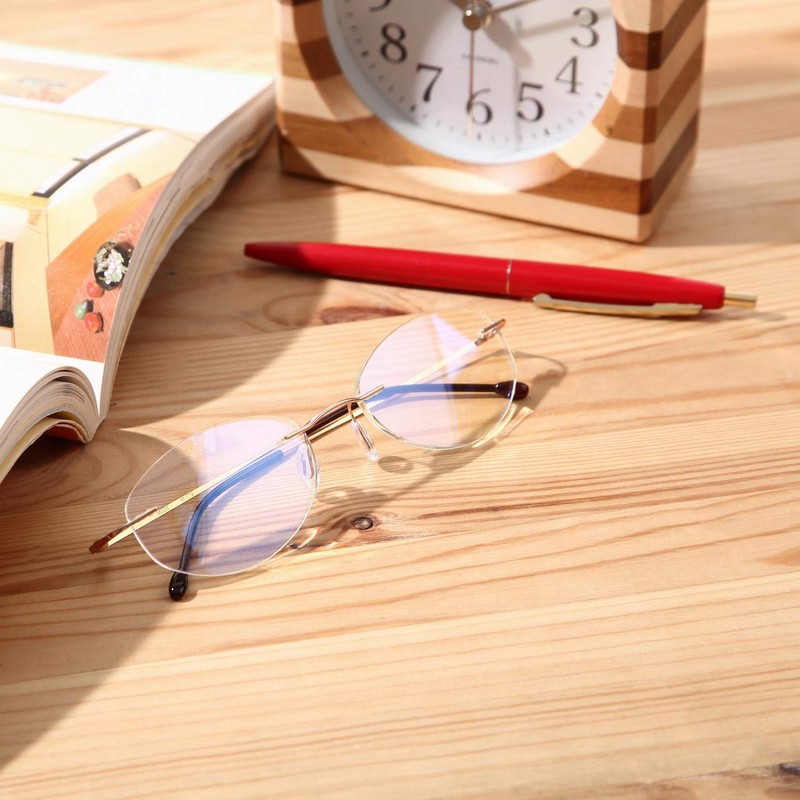 [MIDI ミディ] 老眼鏡 ふちなし ブルーライトカット UVカット メタルフレーム オーバル レディース カラー:ライトブルー (M119,C4,+2.00)