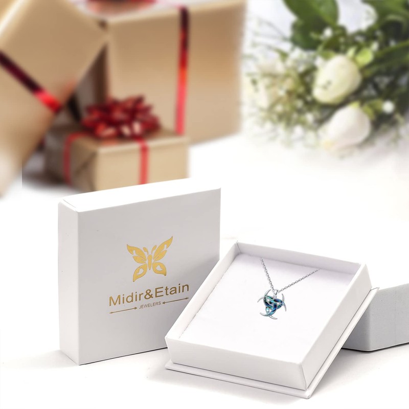 Midir&Etain Abalone Necklace for Women Men 925 Sterling Silver Abalone Celtic Pendant Necklace Norse Mythology Crescent Triple Horn of Odin Viking Necklace Amulet Jewelry Gifts