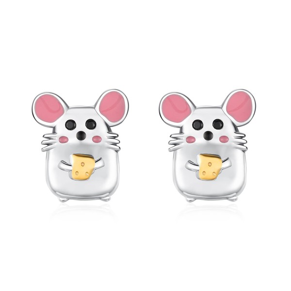 Midir&Etain Mouse Cheese Earrings 925 Sterling Silver Cute Animals Stud Earrings Cartoon Rat Earrings Jewelry Christmas Gifts for Women Christmas Stocking Stuffers