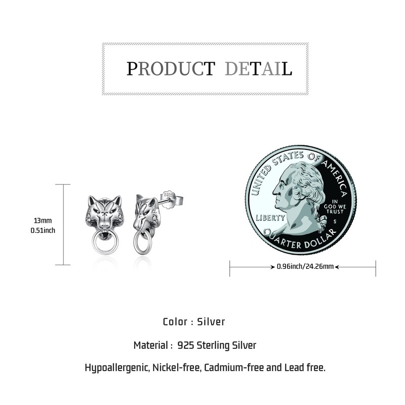 - 🐺Wolf Stud Earrings Size🎁: 0.34*0.51 inches (8.6*13mm); weight: 2.1g. The flat back design is polished smooth and pays attention to details, making it suitable for wear at work and in daily life.
