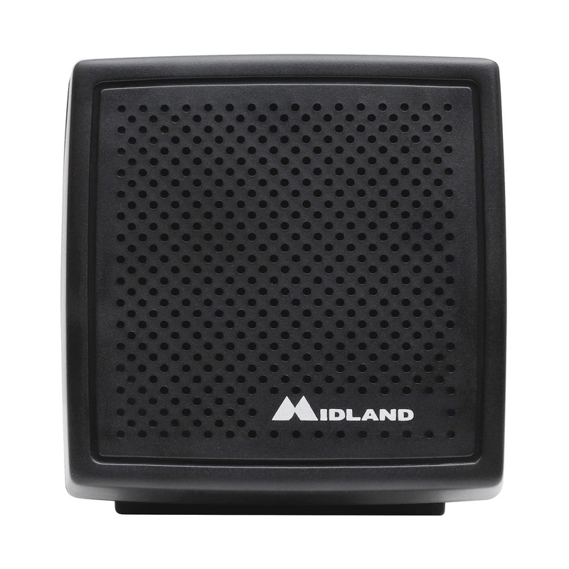 The Midland 21-406 is a high performance 8-ohm extension speaker. The 20-Watt extension speaker can be used with CB or Marine Radios with a 3.5mm speaker output. The bracket size is 3.25" x 1.25". It features a swivel base and includes a cable with a 3.5mm plug.