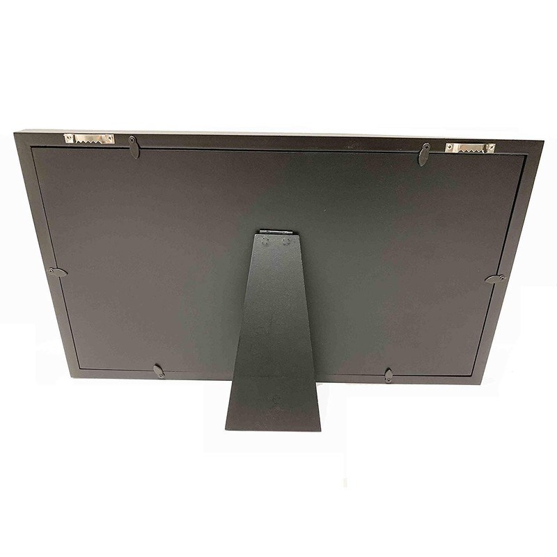 - Frame is 17" x 10" x 1". It can hang on your wall or stand on your desk, shelf, or dresser. Has a opening for 4 pictures and 1 large clay paw print.