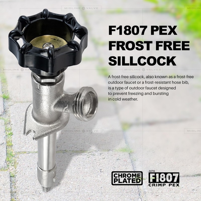Midline Valve 8428P Sillcock Pipe Chrome Plated Brass Body Frost 1/2 inch PEX Connection and 3/4 inch Hose Bib, 8
