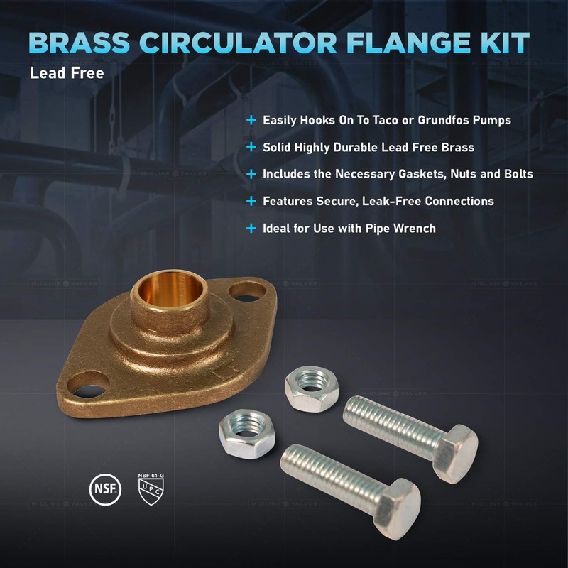 Midline Valve S1550-5 Circulator Flange Kit with Gaskets, Nuts and Bolts for ...