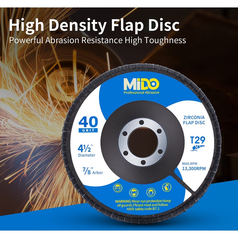 MIDO Professional Abrasive Flap Discs Angle Grinder 25PCS 40 Grit Zirconia Grinder Disc,4.5" x 7/8" Grinding Wheel Flat Type #29