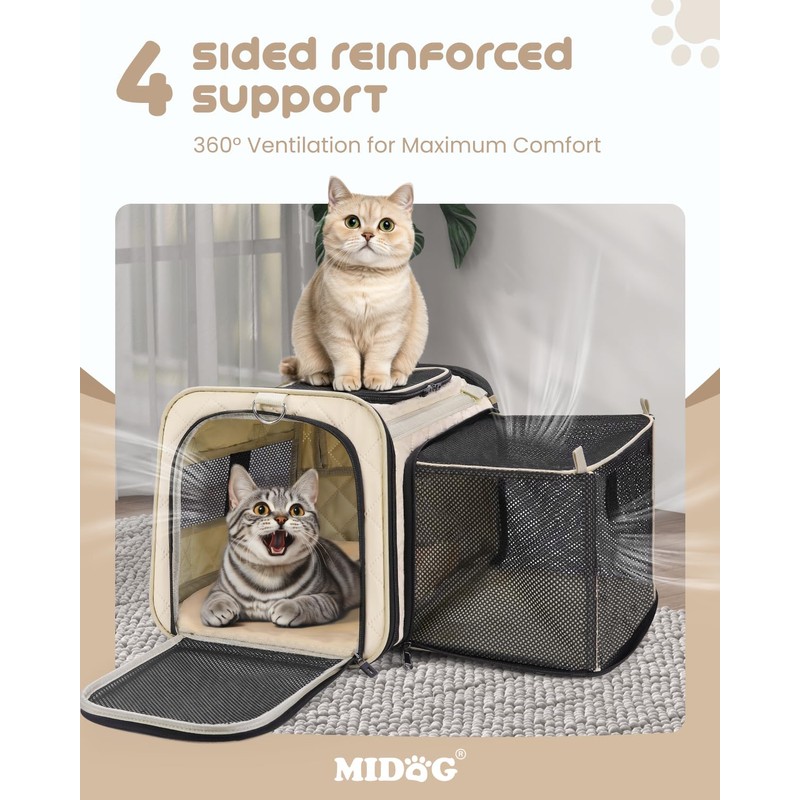 MIDOG Cat Carrier for Small to Medium-Sized Cats,Up to 15 Lbs, TSA Airline Approved Soft Sided Pet Carrier,Collapsible Travel Cat Bag(Beige)