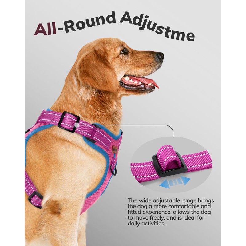 - Fully Adjustable Dog Harness for Secure Fit: With quick-snap buckles and locking features, this dog harness is easy to put on and take off, ensuring a secure fit. Four adjustment points provide a perfect fit for small dog harness and large dog harness, with room for growth, making it ideal for daily use
