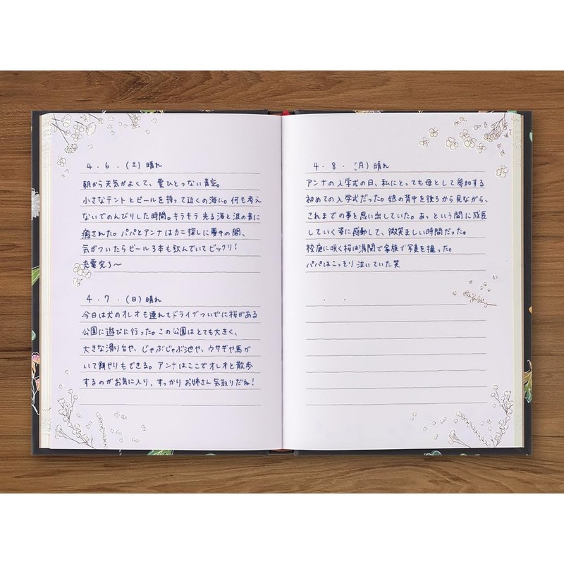 - Designed by illustrator Miltata The cover features a deep navy blue color reminiscent of quiet nights suitable for the journal time and colorful flowers in the image of a flower arrangement