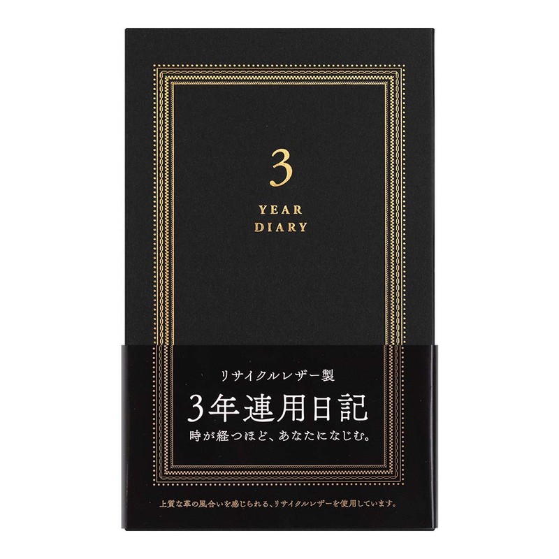 Midori 12889006 Diary, 3 Year Consecutive Recycled Leather, Black