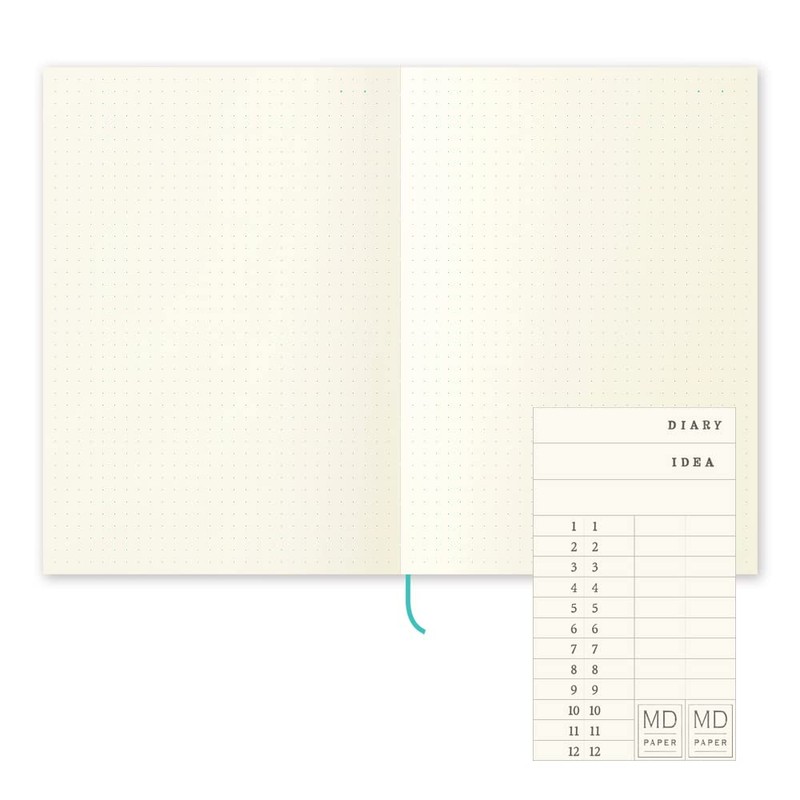 - The binding opens 180 degrees flat, and the pursuit of functional beauty without decorating. Made from MD paper (Midori Diary Paper) developed to comfortably write on a variety of writing instruments, from fountain pens to pencil