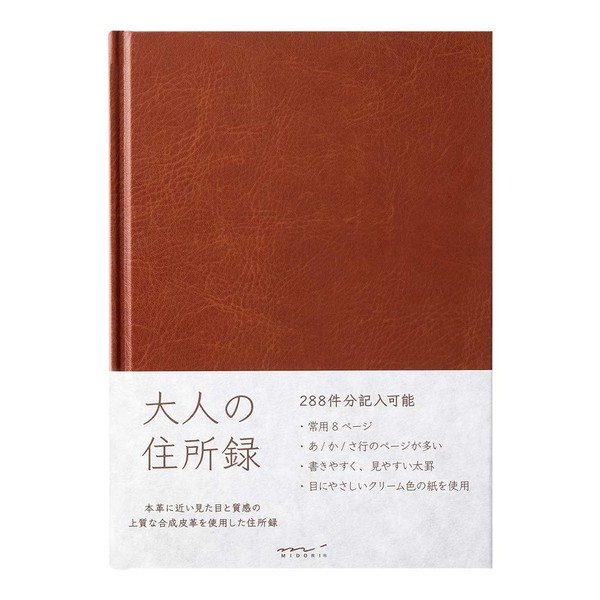 Midori 34499006 HF A5 Adult Address Book, PU Leather, Brown