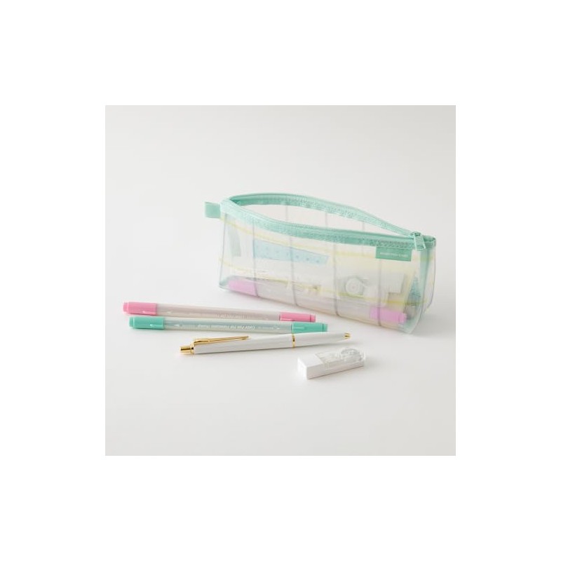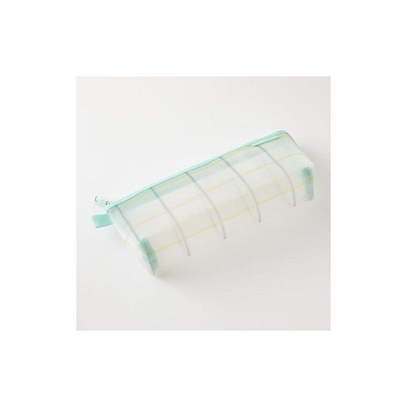 Midori 41848006 Pen Case, Mesh, Gusset, Checkered Pattern, Green