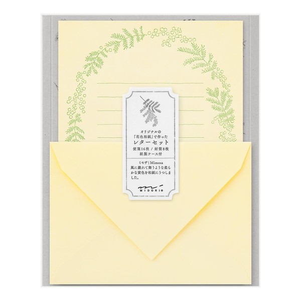 Midori 86930006 Letter Set, Flower Washi, Paper Case, Yellow