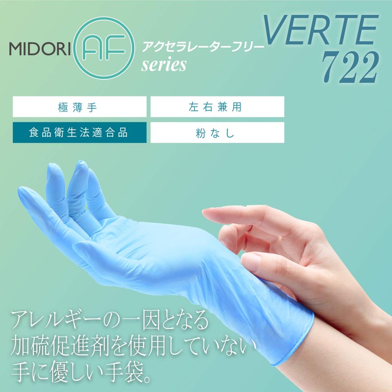 Midori Anzen Berte 722 Nitrile Gloves, Accelerator Free, Powder-Free, Blue, Medium, 100 Pieces (Ultra Thin)