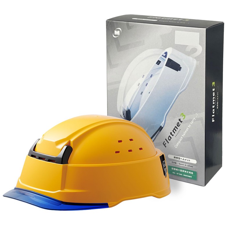 Midori Anzen Flat Met 3 Folding Portable Helmet, ABS, SCT29B with KP, Boxed, Yellow/Blue