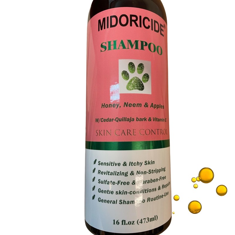 Midoricide Moisturizing dog shampoo to soothe itchy and dry skin, irritated and promotes improved skin -with neem leaf, honey, aloe, cedarwood quillaja16oz