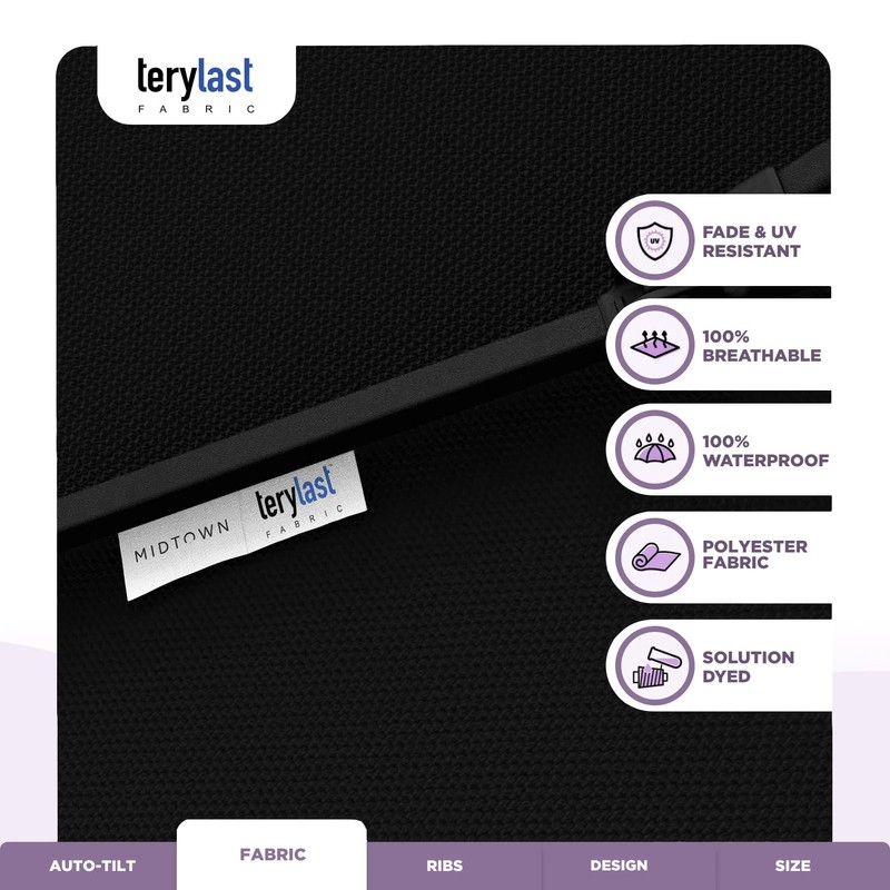 Midtown Umbrellas 10-Year-No-Fade - 9 Ft - UV Proof Ebony Black Polyester Fabric - Umbrella Outdoor Patio, Auto-Tilt Aluminum Frame Patio Umbrella for Garden, Pool & Deck - Black Pole