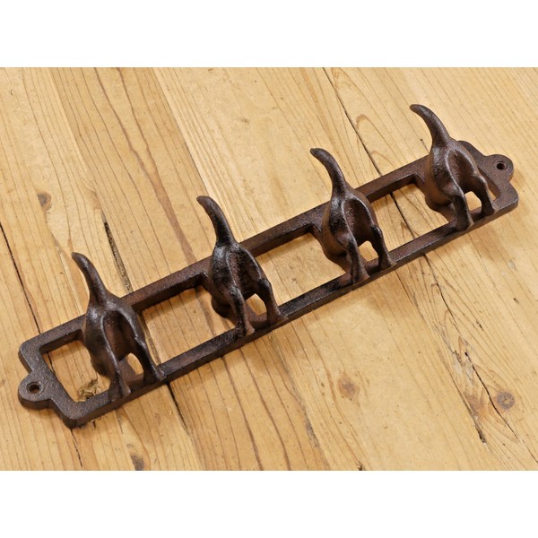 MIDWEST CRAFT HOUSE 4 Cast Iron Dog Butt Tail Hooks Pet Leash Coat Hat Hook Rack Wall Mount Rustic