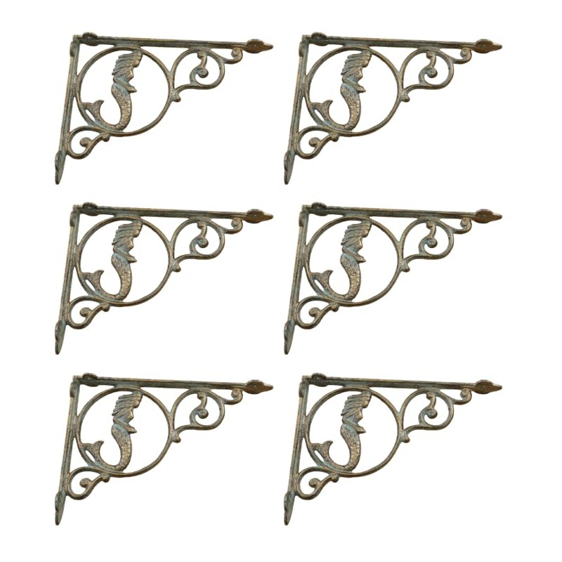 Midwest Craft House 6 CAST IRON MERMAID NAUTICAL SHELF BRACKETS