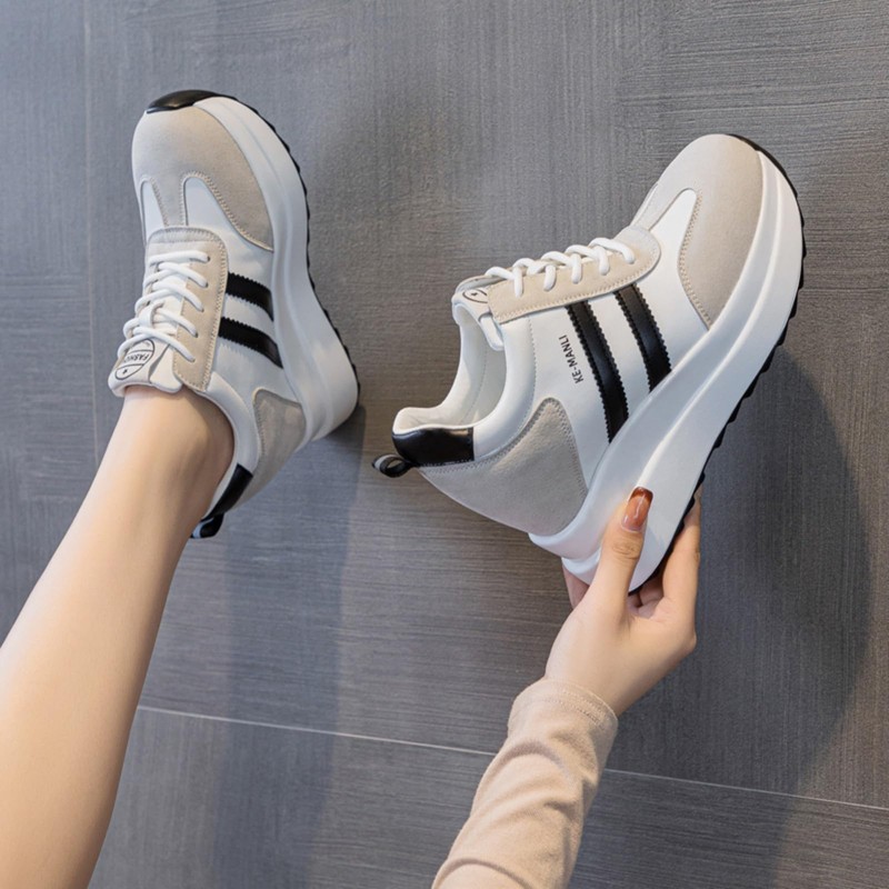 - High-quality leather: the upper material of the wedge trainer is made of high-quality leather, which ensures softness and comfort. The shoe is lined with a mesh material that increases air circulation inside the shoe and keeps your feet dry.