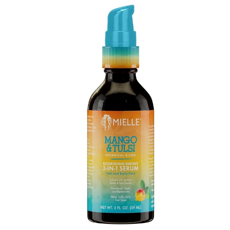 Mielle Organics Mango & Tulsi Nourishing 3-in-1 Hair Serum - Hair & Scalp Serum for Frizz Control, Split Ends & Moisture Balance - Strengthens & Seals Cuticles with Nutrients (12 Fl Oz)
