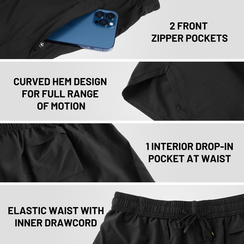 - 4 Functional Pockets---Mens Workout Shorts included 2 deep slash zipper pockets and 1 back zipper pocket for storage convenience; 1 internal pocket at waist provides extra security storage for key and other small items