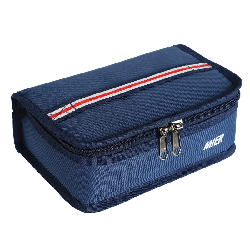To pack a sandwich, a banana, and juice with a little room to spare, or to use as a child's lunch box, we recommend the versatile MIER lunch box. Its compact, rectangular shape fits nicely into a backpack or tote. Unlike roll-top bags or large, bulky lunch boxes, this streamlined shape fits easily in a crowded fridge. Aluminium lining with foam padded to keep your food at optimal temperatures. Small size makes it easy to carry around, whether you're in the office, school, work, or sports, which makes you enjoy delicious tastes, keep away from junk food and have a heath lifestyle.