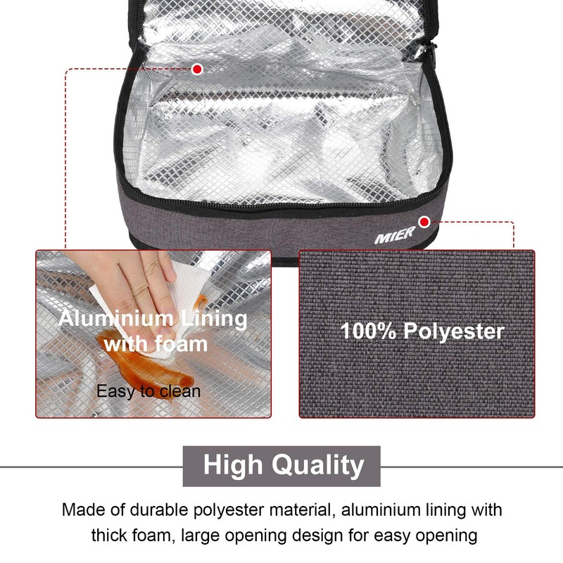 MIER Small Lunch Box Bag Food Storage Cooler Bags Insulated Travel Kit for Women and Men, Set of 1(Black 1pcs)